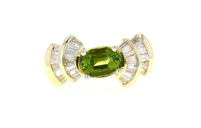 14K Yellow Gold Oval Peridot & Baguette Diamond Ring