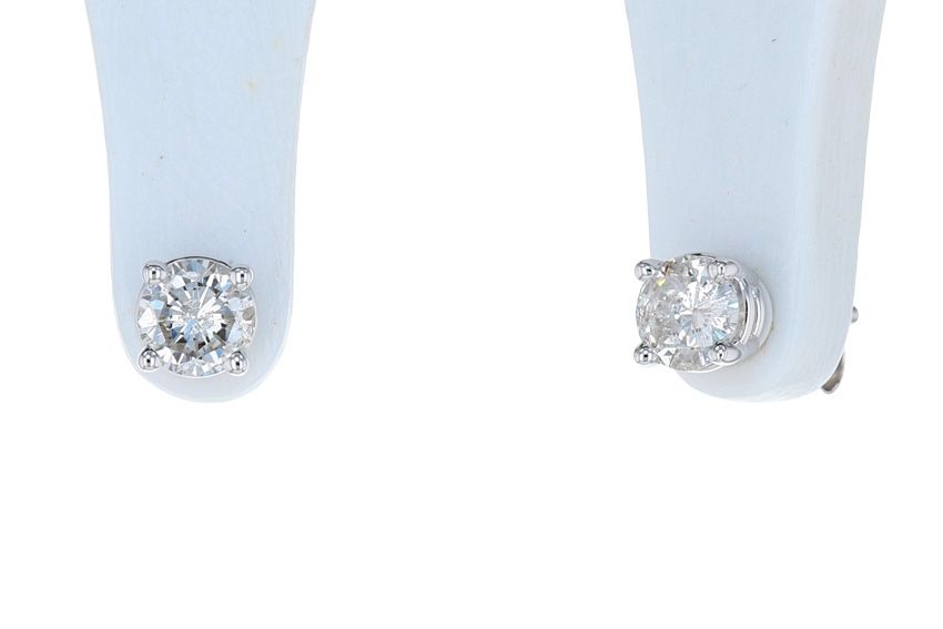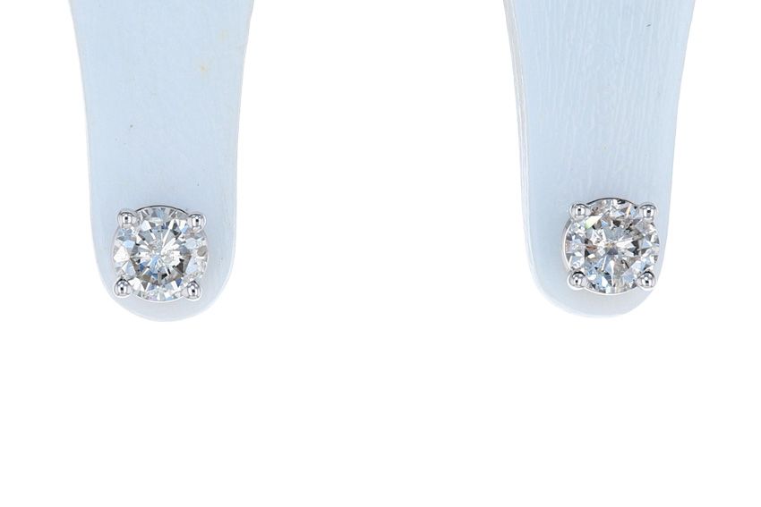 14K White Gold Round Brilliant Diamond Four Prong Basket Stud Earrings