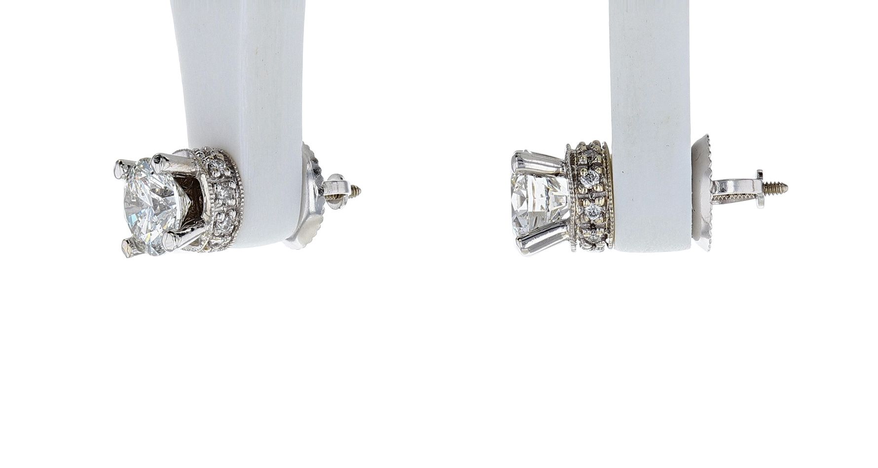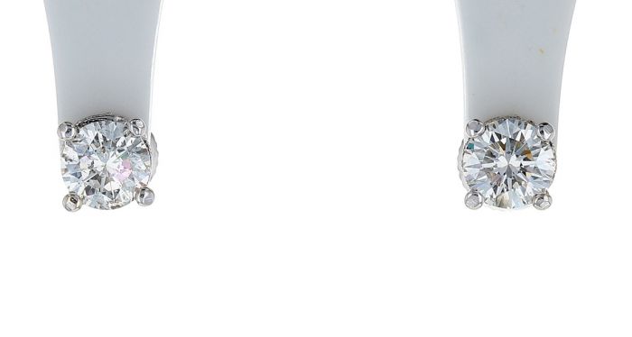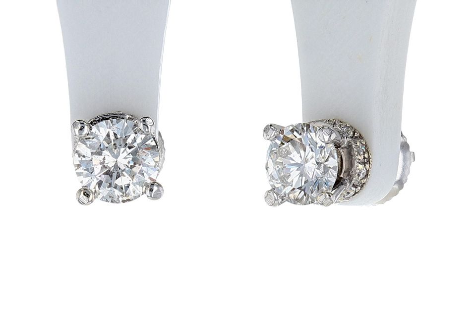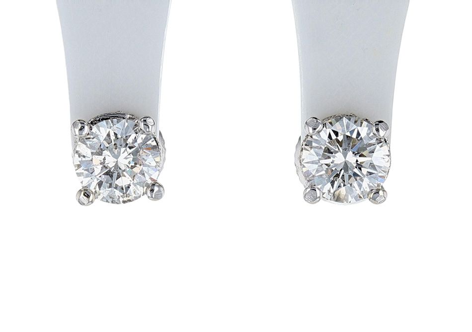 14K White Gold Round Brilliant Diamond Stud Earrings