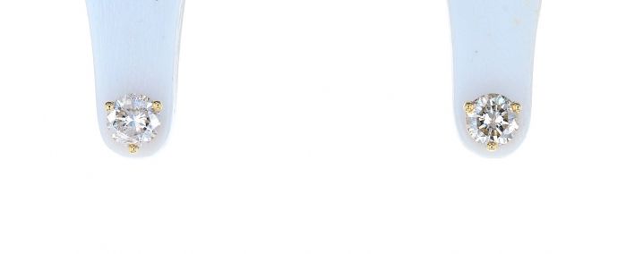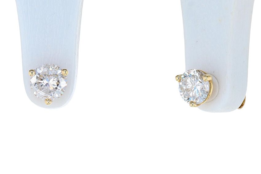 14K Yellow Gold Round Brilliant Diamond Four Prong Basket Stud Earrings