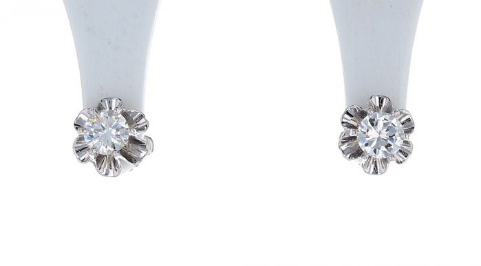 "Butter Cup" settings with a 3/4 carat total weight diamonds. Matching pendant available.