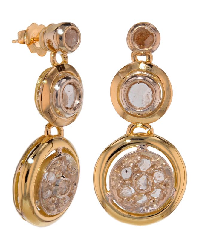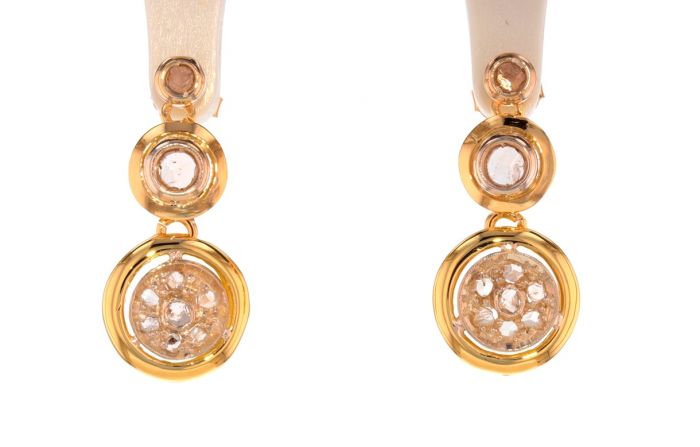 Dangling earrings with Diamond Slice and Rose Cut Diamond Accents