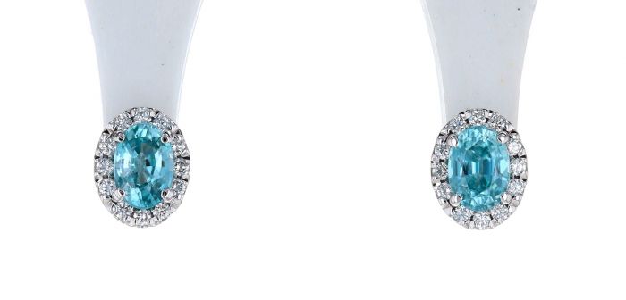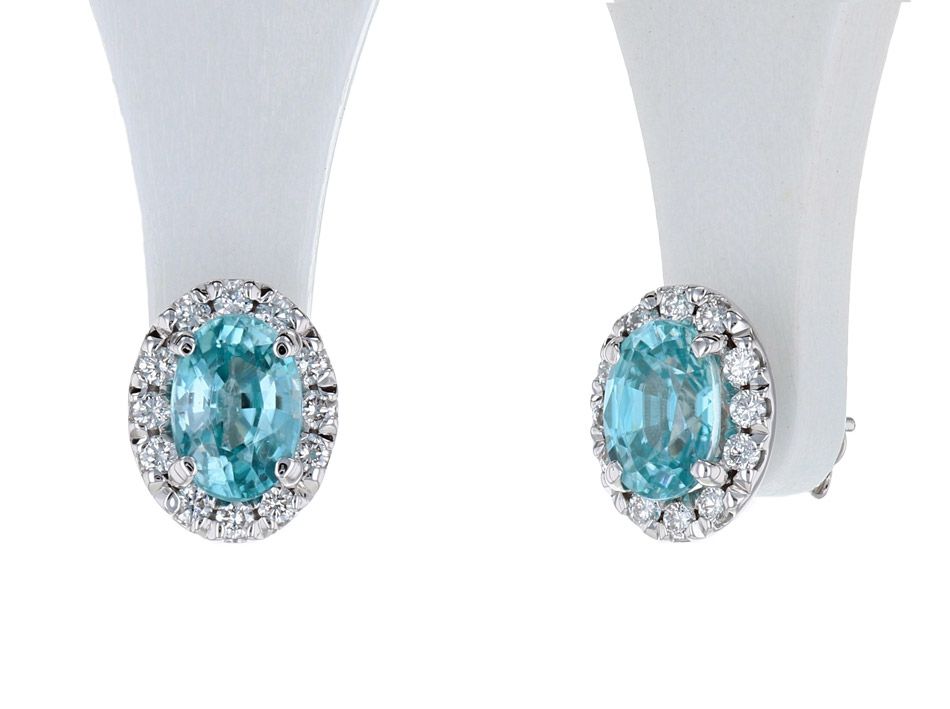 14K White Oval Blue Zircon 1/3 CTW Diamond Semi-Set Earrings