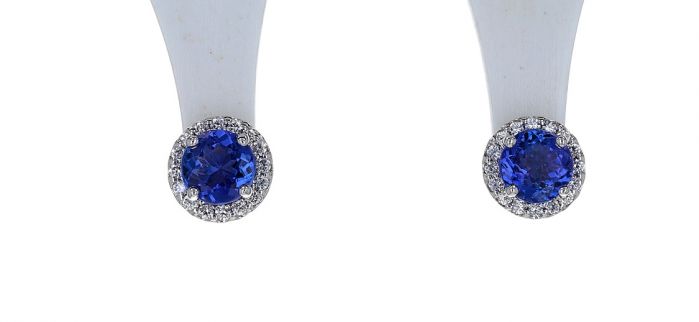 Absolutely stunning tanzanites totaling over 2.0cts with diamond halo accents totaling 0.25cts.