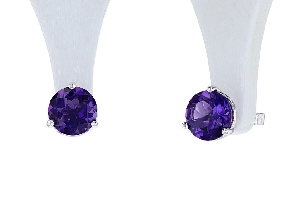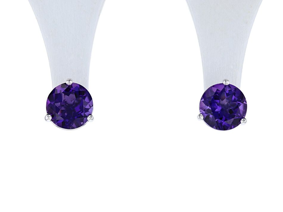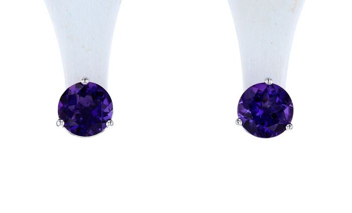 14K White Gold Round Amethyst Martini Stud Earrings