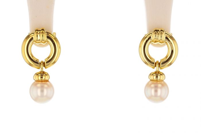18k Yellow Gold Tiffany & Co. Door Knocker Pearl Earrings