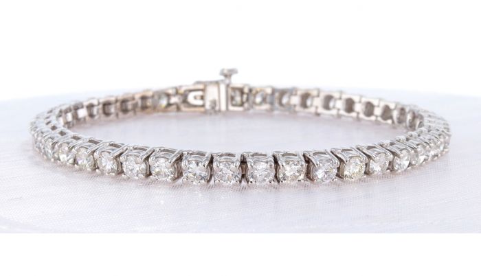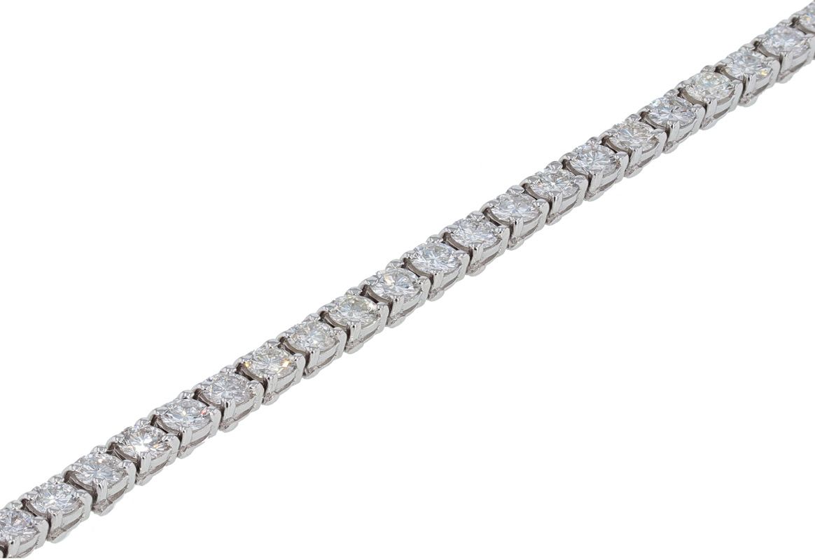 14k White Gold 7+Carat Round Brilliant Diamond Four Prong Tennis Bracelet