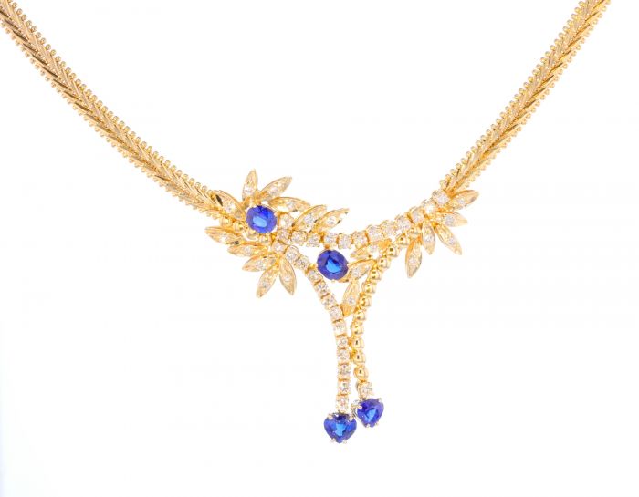 14K Yellow Gold Ceylon Sapphire & Diamond Riccio Style Necklace