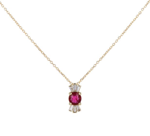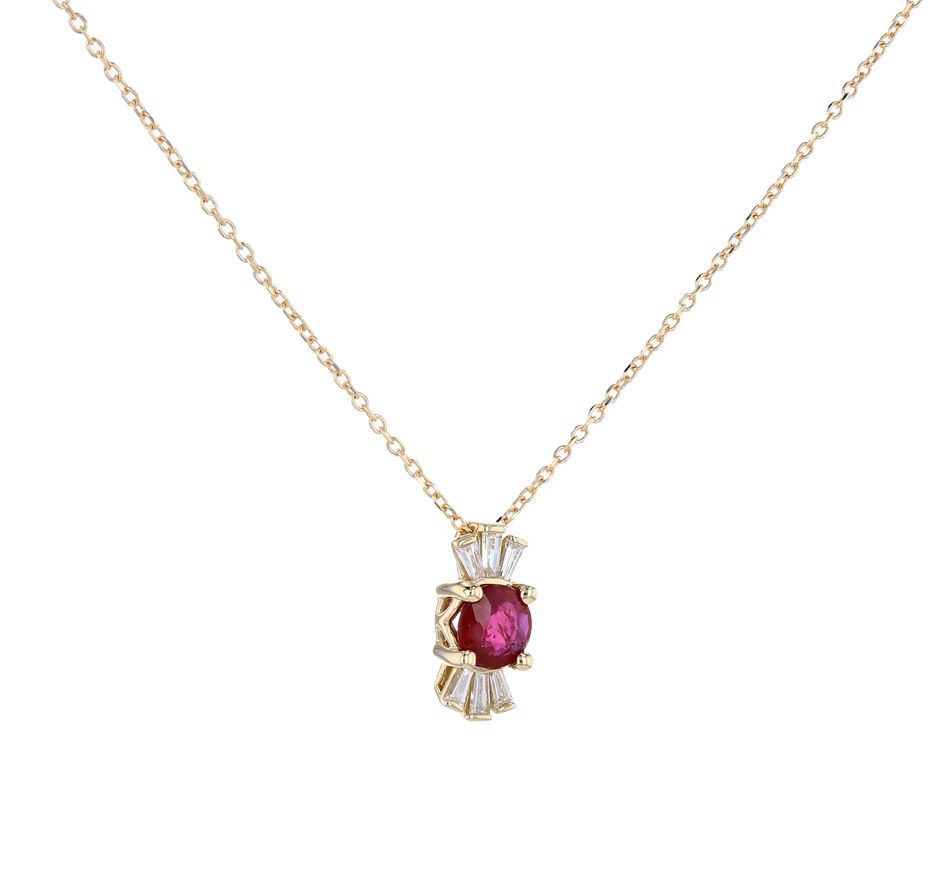 14K Yellow Gold Ruby & Baguette Diamond Necklace