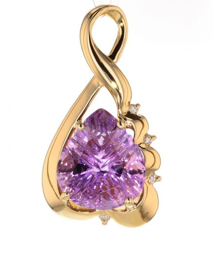 14k Yellow Gold Fancy Cut Pear Shape Amethyst & Diamond Pendant