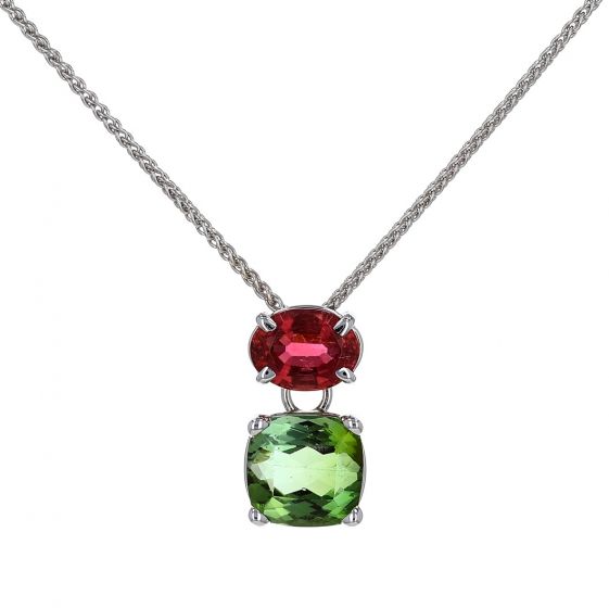 14K White Gold Green & Pink Tourmaline Slide Pendant