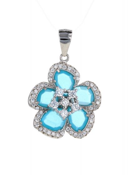 Sterling Silver Baby Blue & White Cubic Zirconia Flower Pendant
