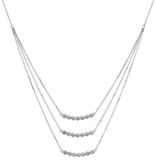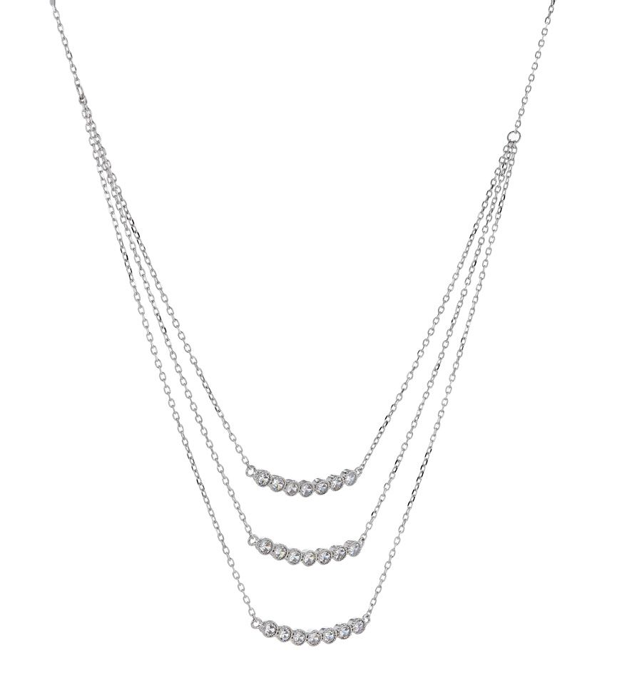 Sterling Silver White Cubic Zirconia Bezel Set Triple Bar Necklace