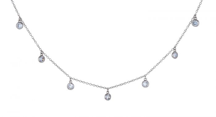 Sterling Silver White Cubic Zirconia Bezel Set "Diamond-by-the-Yard" Necklace