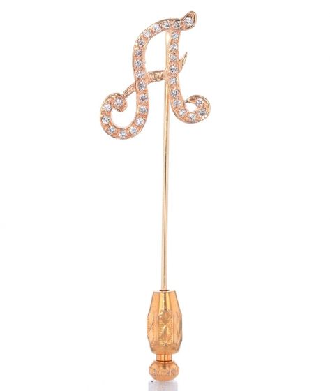 14k Yellow Gold Pave' Diamond "A" Stick Pin