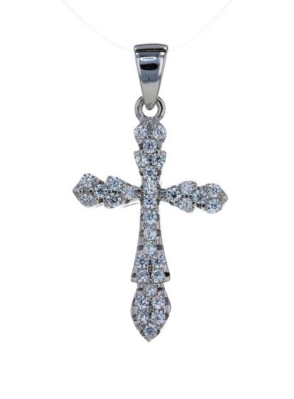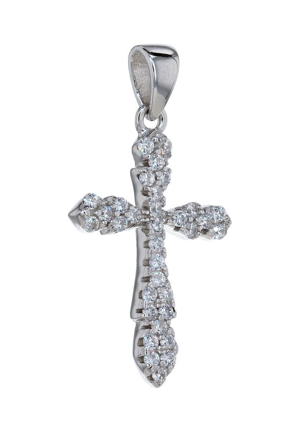 Sterling Silver White Cubic Zirconia Shared Prong Set Cross Pendant