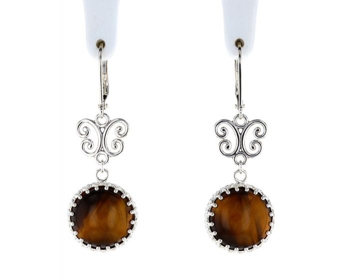 Sterling Silver Tigers Eye & Scroll Hinged Hoop Earrings