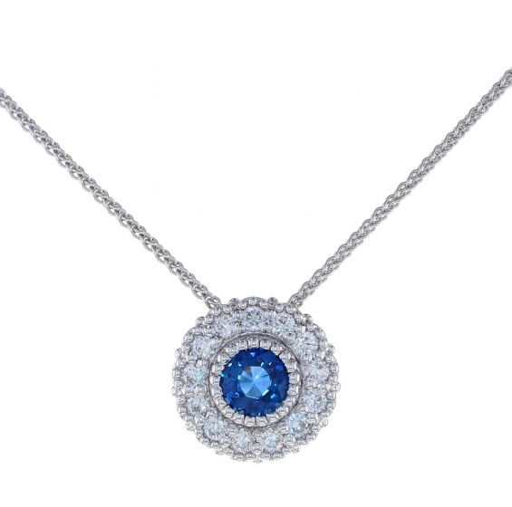 Kristopher Mark Blue Sapphire & Diamond Milgrain Cluster Pendant