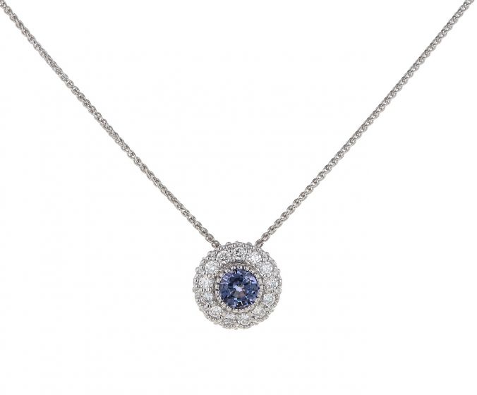 Kristopher Mark Lavender Sapphire & Diamond Milgrain Cluster Pendant